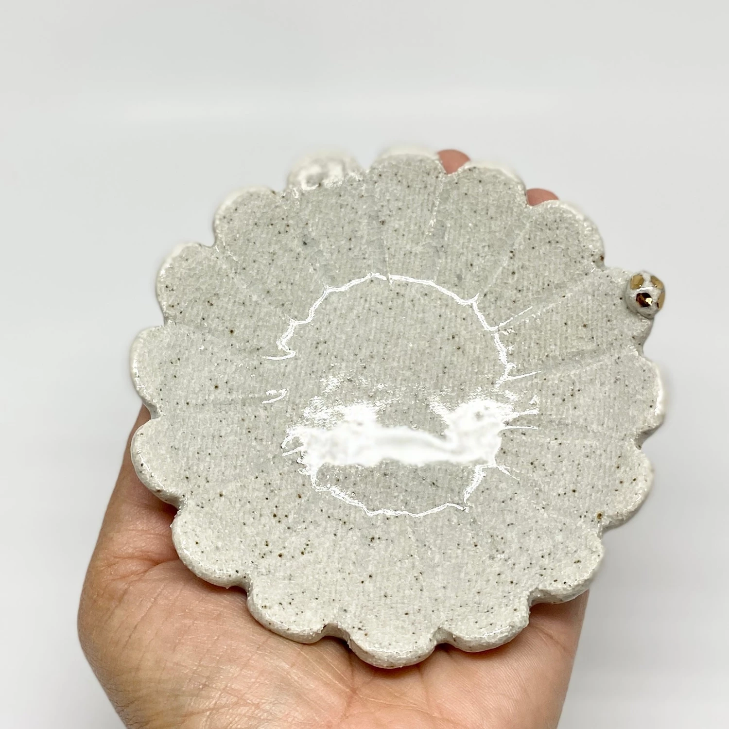 Using high fired ceramic stoneware and porcelain, she beats, builds, embeds, pierces, scrapes, squashes and transforms until the colour, density, shape, texture and tone are in harmony.