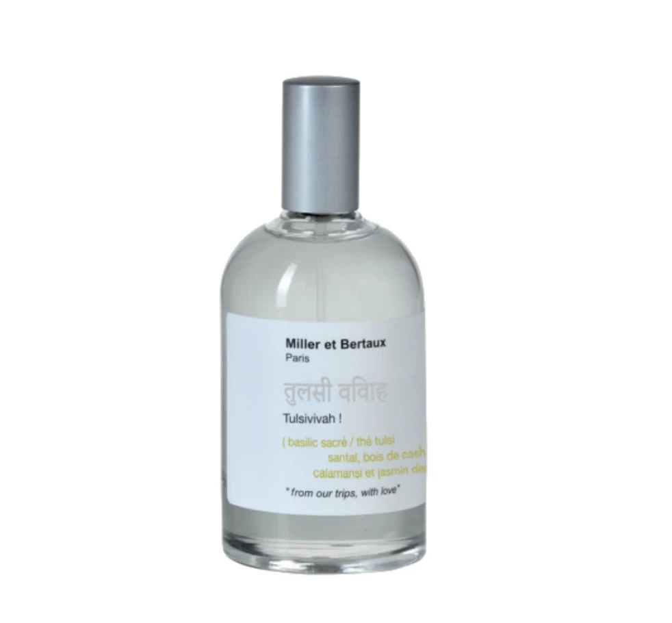 Tulsivivah! celebrates the festive scent of India. The fragrance celebrating the festival of Tulsi, the holy basil. A vision of the beauty of India with the simplicity of Tulsi Basil and the zest of Calamansi (a small lemon) creating a fresh zing and then revealing a creamy Sandalwood and Jasmine combination that reveals the sensuality and mystical depth of India.