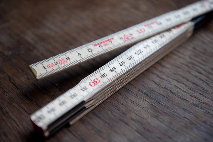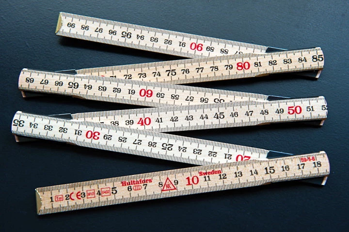 A traditional carpenter’s rule that we find very useful for fabrics!