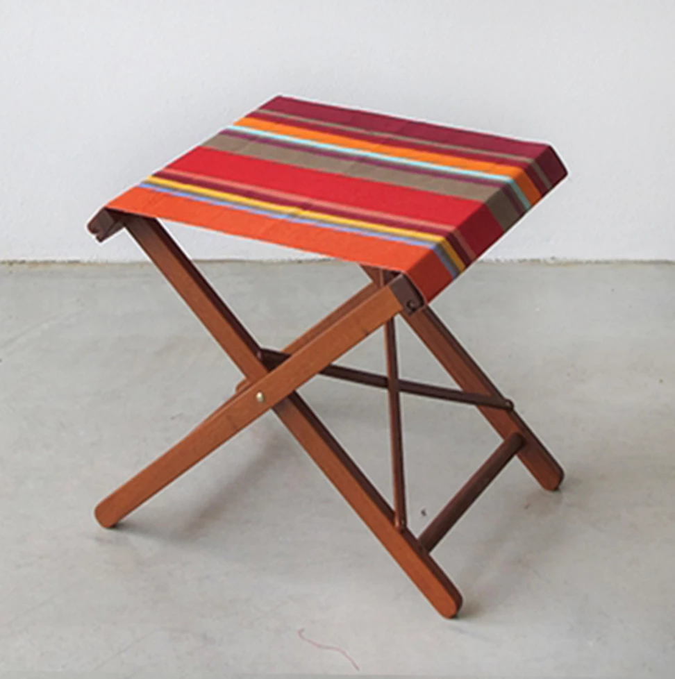 Wonderful Authentic Hardwood/ Ironwood folding stool in wonderful 100% Cotton Collioure Rouge fabric from France.Â