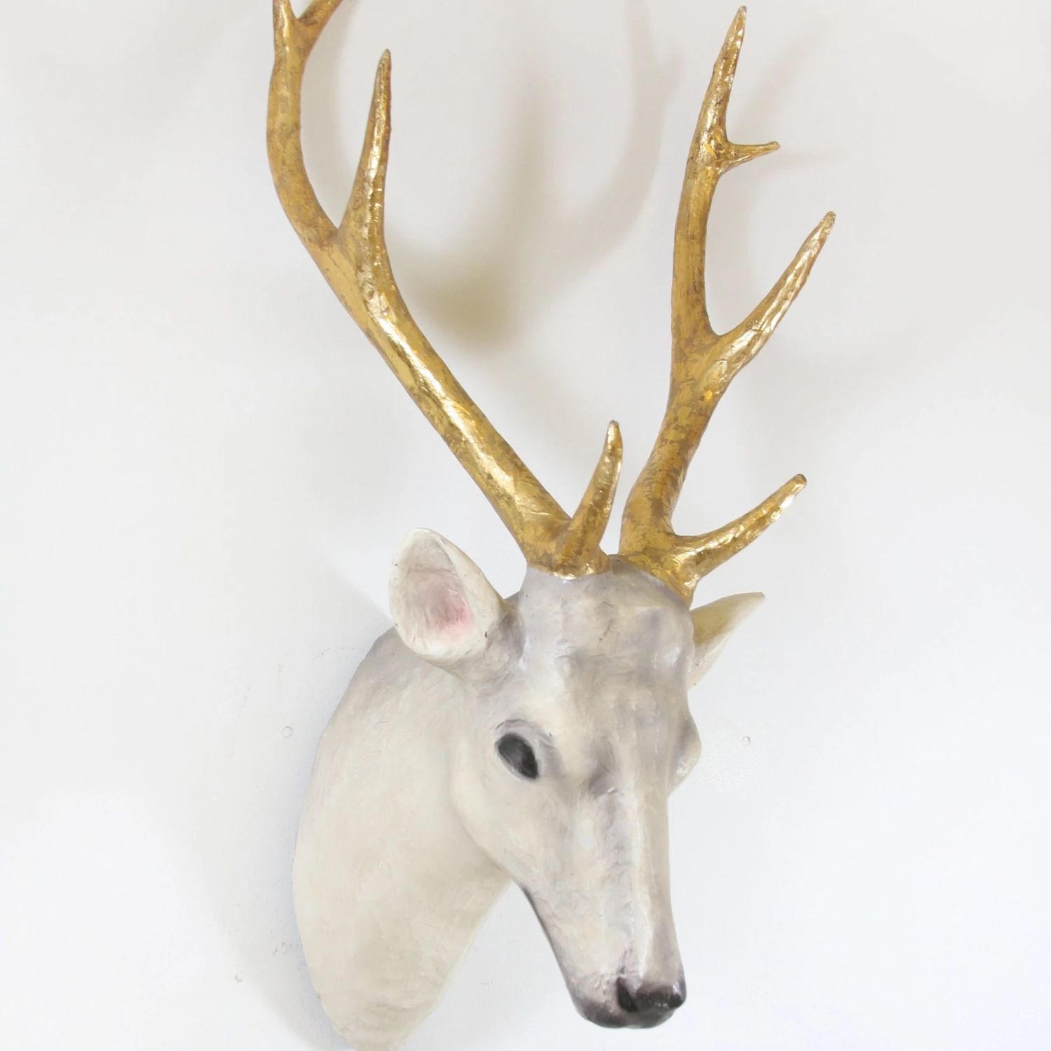 Make a statement with this stunning handmade papier-mâché wall mount of a Forest Stag in Gold.