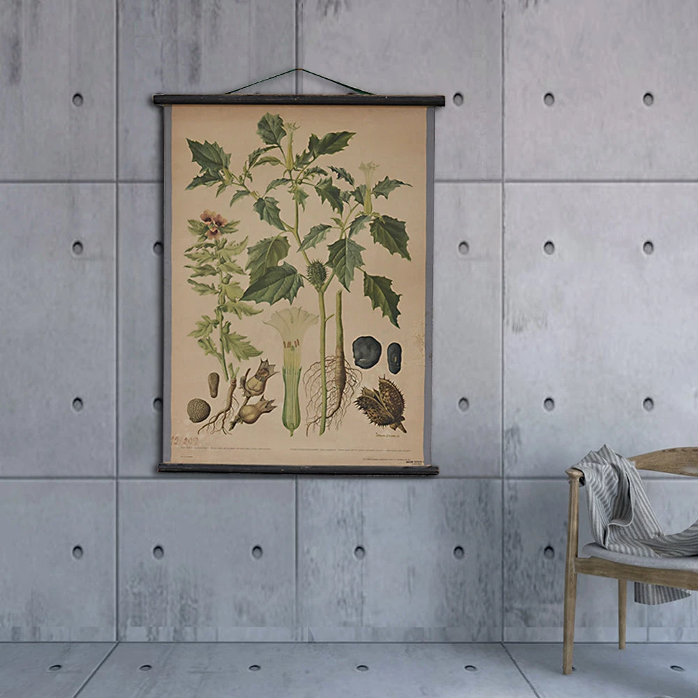 This is a stunning authentic vintage mid century botanical poster featuring beautiful explorative illustrations of Black Henbane and Jimsonweed.