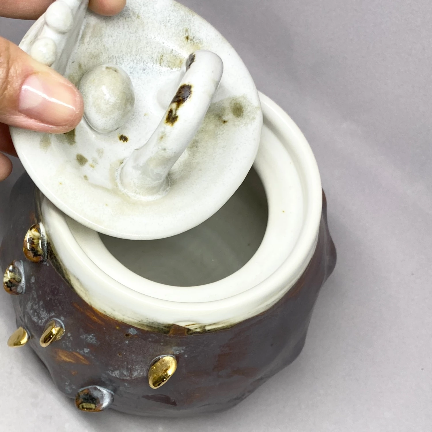 Using high fired ceramic stoneware and porcelain, she beats, builds, embeds, pierces, scrapes, squashes and transforms until the colour, density, shape, texture and tone are in harmony.