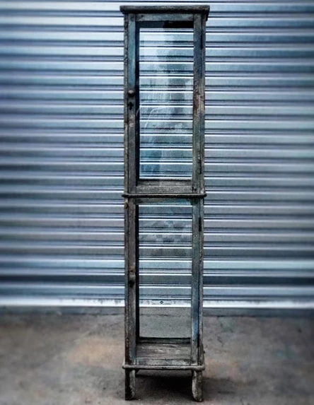 A vintageĀ treasure for all your treasures. This brilliant glazed cabinet, an artifact from another time –Ā originallyĀ from an old church in Belgium. Fitted with two removable glass shelves behind two timber doors with crucifix and leaf detailing.
