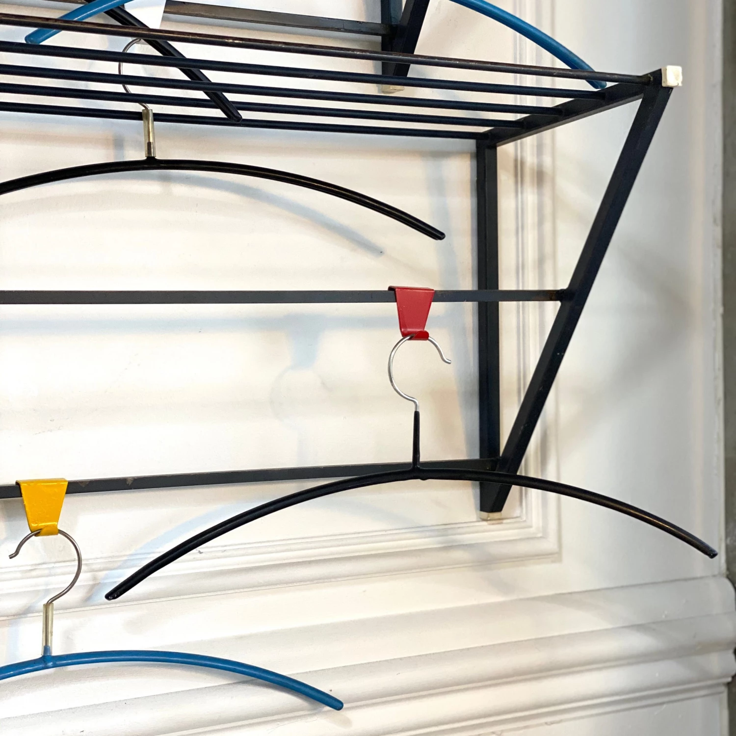 An original Tjerk Reijenga wall mounted coat rack, complete with three original coat hangers.