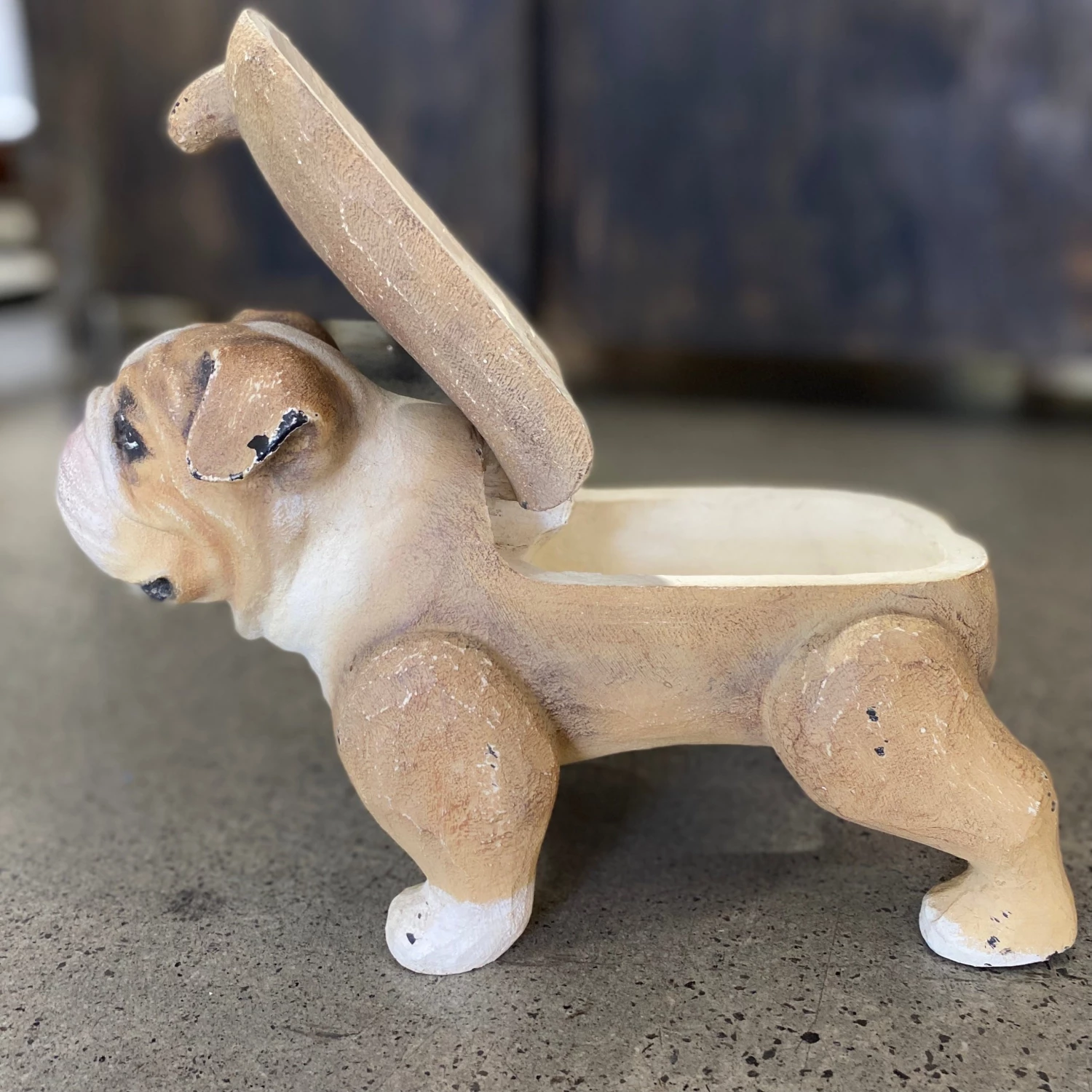 Nostalgic Wooden Carved Bulldog Figure with secret drawer.Â