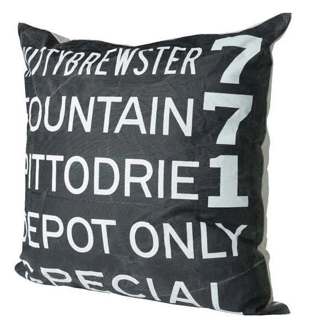 A wonderful statement cushion featuring printed  a print based on a vintage subway sign.